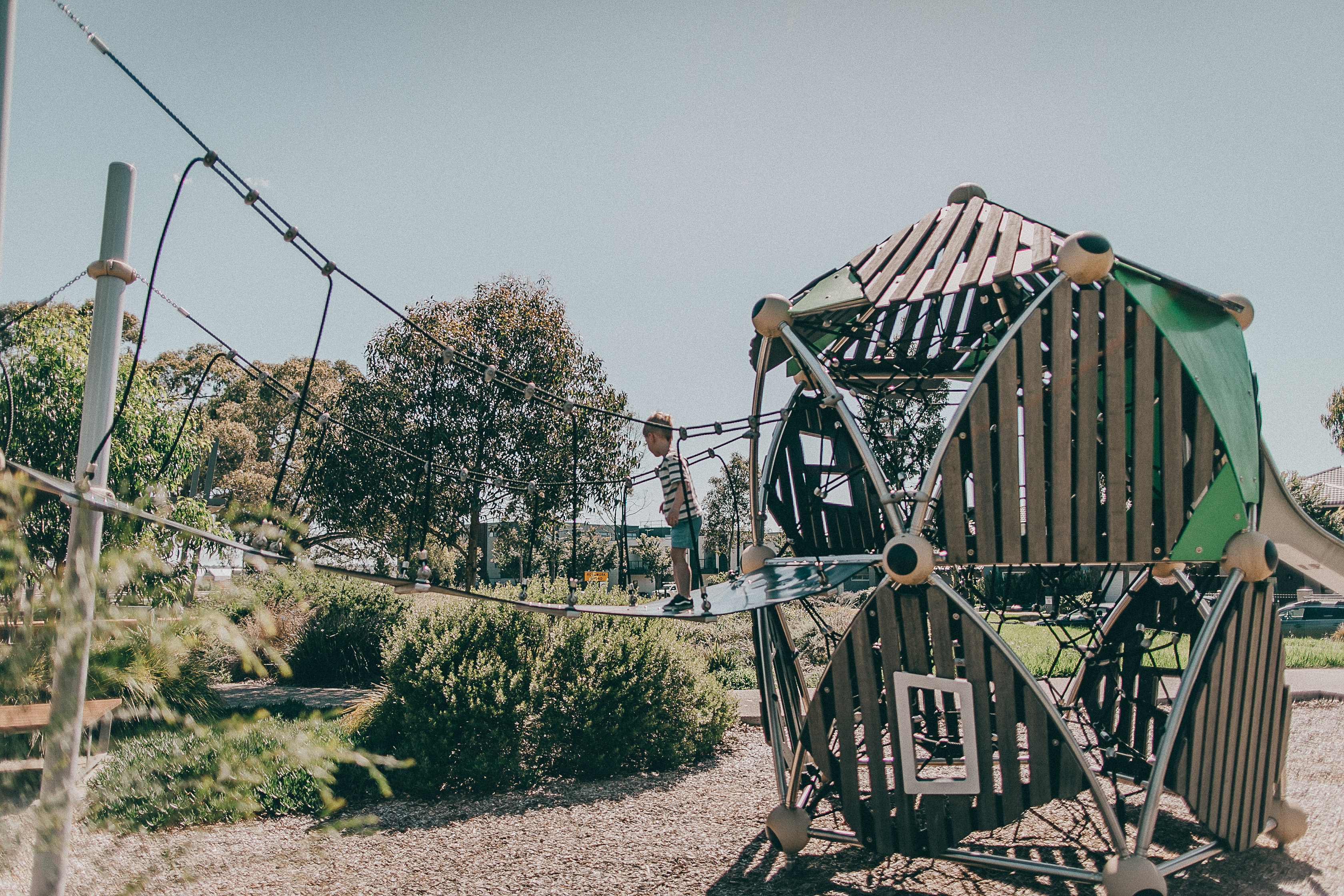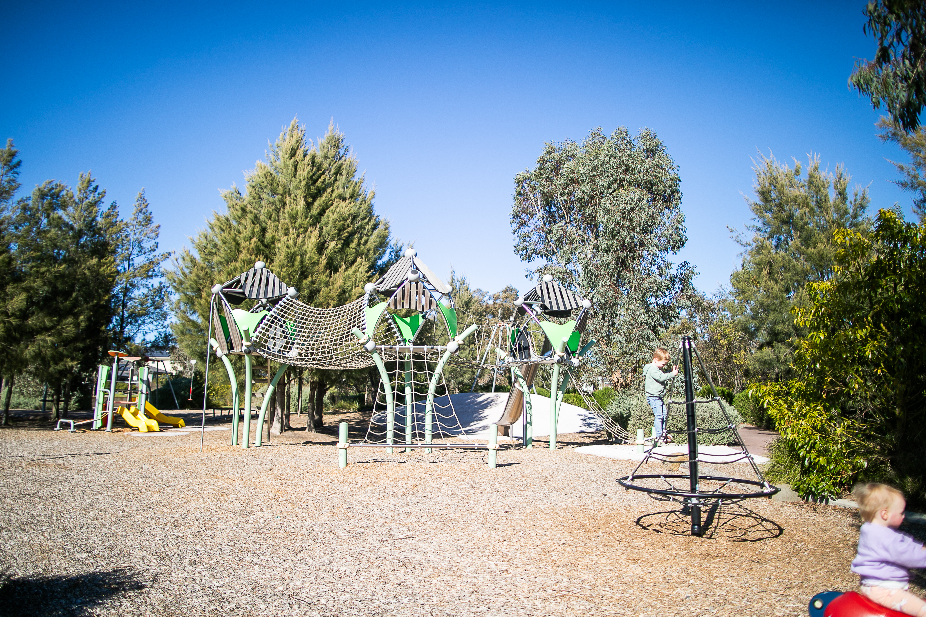 Nestled among stunning mature gum trees, Debonair Parade Playground is yours to discover. With its ‘Indiana Jones’ inspired rope bridge leading to a wooden playhouse complete with climbing ropes and a slide, this spot is sure to keep the kids entertained.