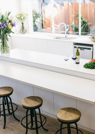When it comes to design, make sure you’re thinking about how your environment will change over the life span of your kitchen. Are you still going to find having a wine rack with space for 200 bottles useful in 5 years time, or will this space be more useful to keep things tidy and breakables out of the way of your children? It is very easy to over-design a kitchen to current trends and forget that for most of us, we may be fortunate enough to do a kitchen renovation only once or twice in our lifetime.